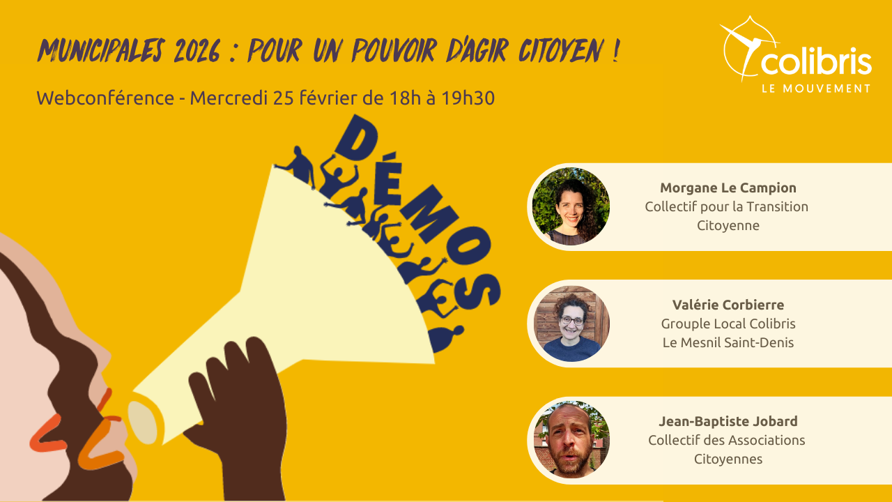 Pourquoi le Mouvement Colibris est apartisan, mais pas "apolitique" : À l’approche des municipales, une question revient : Colibris est-il un mouvement politique ou partisan ? Le Mouvement agit ici et maintenant pour une transition écologique, juste inclusive et démocratique, sans dépendre d’un parti. Nous défendons une vision politique, au sens premier du terme. La vision d'une société fondée sur la sobriété, la justice sociale et la coopération.Colibris porte des alternatives (permaculture, mobilité douce, numérique éthique) qui transforment les territoires. Les Groupes Locaux, par leurs actions (Fête de villages, réparation et récupération, protection des littoraux), incarnent une politique du quotidien, ancrée dans l’action collective et l’expérimentation.